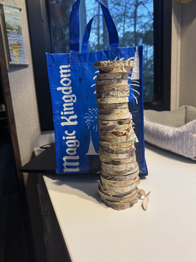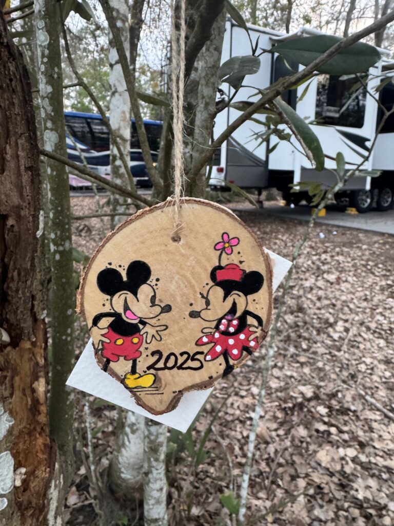 I’m going to focus more on the campground this post, as I realize that Disney gets redundant. I discovered a couple of Fort Wilderness campground Facebook groups and found out about the scavenger hunt! The scavenger hunt is campground wide and people ‘hide’ various items around the park, leaving clues for others to ‘find’ the item. Items ranged from dollar store items to Loungefly backpacks! Some folks are super generous! I found a few things and I fell in love. It allowed me to craft and share my creations. Turned out my ornaments were very popular and I even was able to do some trades.