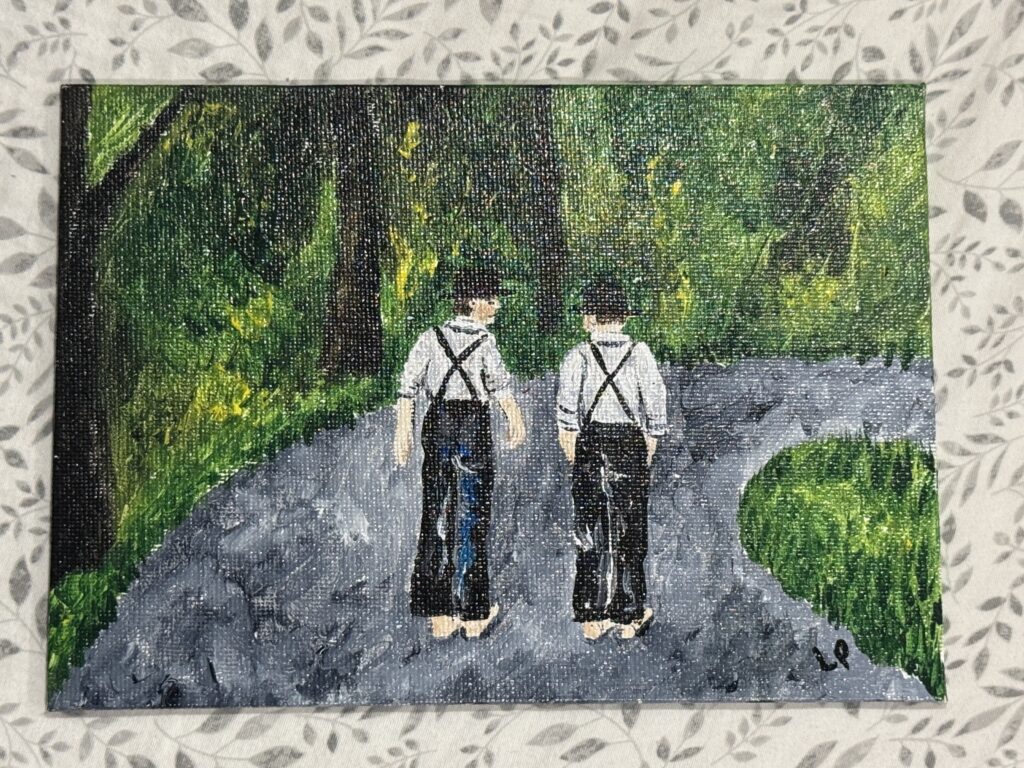 One day while picking up some mail at the post office in Middlebury, I stumbled upon a FLAG. I got a great little piece that is called Amish Boys Walking. Later, I actually met the lady who owns the gallery. She is an artist named Linda Pieri. She is super kind and WAY talented! I enjoyed hanging out with her for the day.
