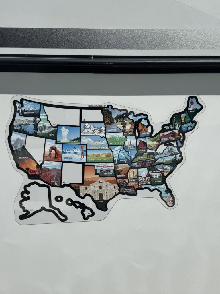 We are getting the map filled in pretty good! We arrived in Mankato, Minnesota and got settled in a site at Sawmill Campground. I was apprehensive about this campground, as the reviews were pretty negative. Lots of complaints about the owner who apparently can be a real grump. When we checked in, the lady who was working the office was great. She was very friendly and accommodating. We got a nice site and never had any issues, which I was grateful for!