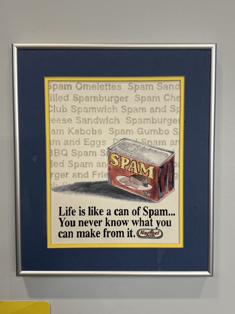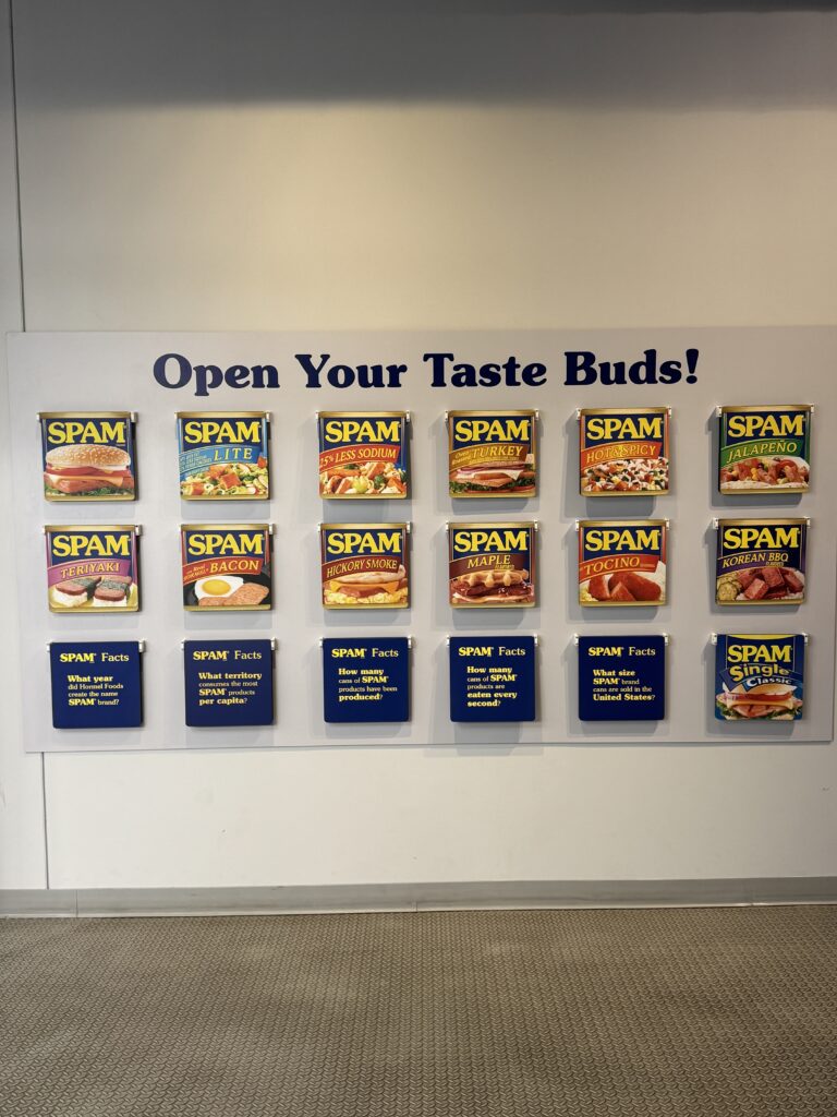 We discovered that the SPAM museum was not too far off, so we decided to make a day trip and go check it out. It was interesting, for sure. It also got us interested in having SPAM on occasion. I was shocked to see all the flavors they have now. I don’t think I have purchases SPAM since the late 90’s/early 2000’s.