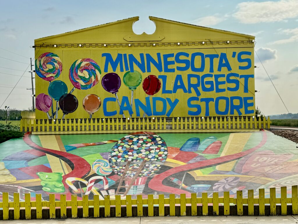 I flew to Dallas the first week of June. Took care of some doctor appointments and spent time visiting Mom, James and Michael. When I flew back to Minnesota, Ed and I stopped at Minnesota’s Largest Candy Store. I have to say, we have never been to a larger candy store. They had so much stuff!