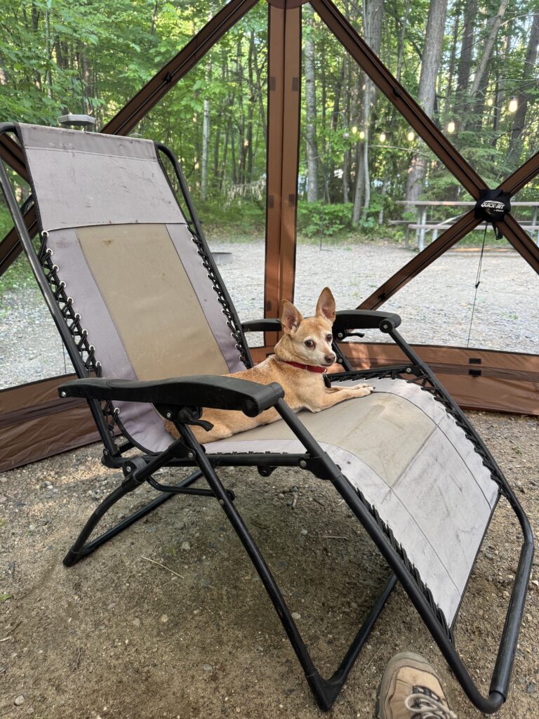 We set up the CLAM to hang out in. Scooby thinks this is his chair. He lets Ed use it on occasion.