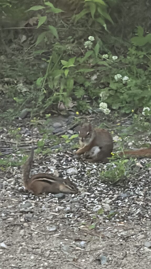 We had lots of critter visitors. They enjoyed the peanuts and feeders I had around the site.
